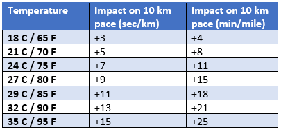 Table 1. The impact of various ambient temperatures on running pace at the 10 km race distance.